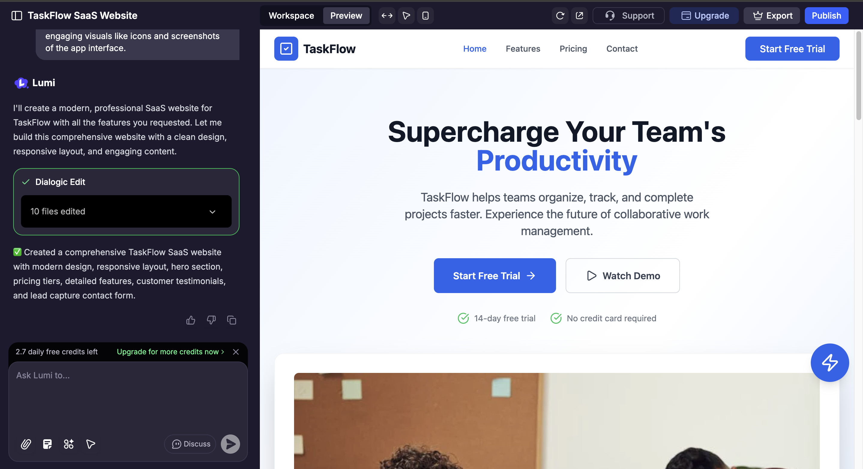 LUMI.new isn’t just a website builder it’s an AI platform that builds entire web applications from text prompts. It can create full apps with logic, user login, and databases.